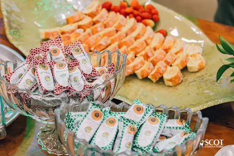 Coffee breaks entre apresentações, coquetel de relacionamento, e encerramento no Dia de Campo com várias estações de carne e a tradicional Queima do Alho da Festa do Peão de Barretos.